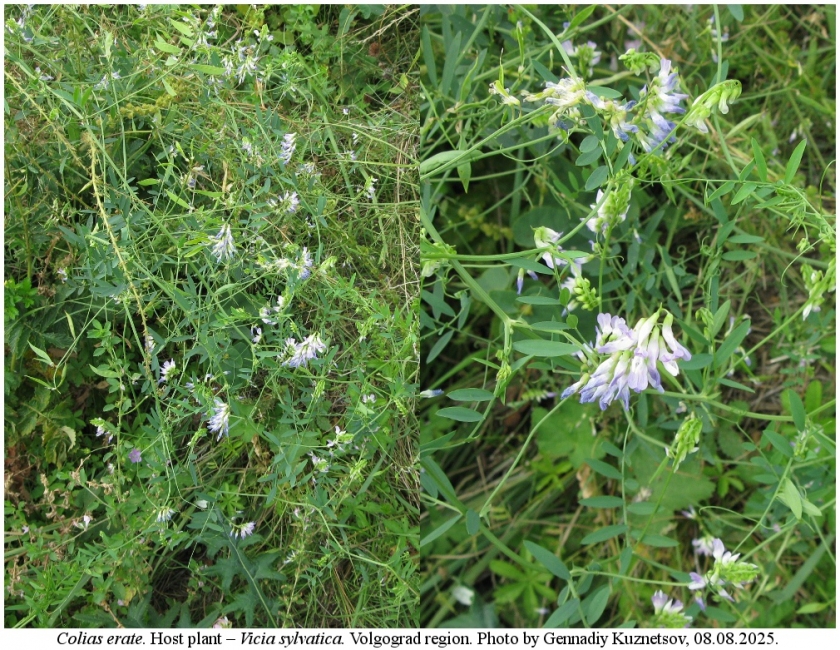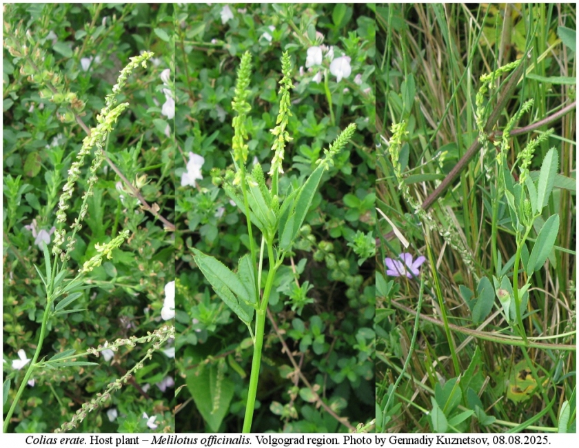 Замечания по систематике. Помимо бабочек с типичной окраской описано несколько форм: f. chrysodona Boisduval, 1840 - окраска крыльев оранжевая у обоих полов, из-за чего форма считалась гибридом с желтушкой шафрановой (C. croceus); f. albida Bien. - крылья самок сверху белые с черным рисунком; f. hyaloides Grum-Grshimailo, 1890 - у самцов черная кайма переднего крыла сверху со светлыми размытыми пятнами (как у самки) (Некрутенко, 1990). Кавказские бабочки относятся к номинативному подвиду (Львовский, Моргун, 2007). Типовая местность - Южная Россия. Мнение Г. В. Кузнецова и Б. В. Страдомского. В работе V.Dinca et al. «Complete DNA barcode reference library for a country’s butterfly fauna reveals high performance for temperate Europe» (2010) убедительно показано отсутствие различий по митохондриальному гену COI между экземплярами таксонов Colias crocea и C.erate. Генетические исследования и наши наблюдения позволяют сделать предположение о существовании лишь одного вида с двумя крайними морфологическими формами, которые принято считать самостоятельными видами. Изменчивость. По наблюдениям В. В. Тихонова в 2008-2010 гг, от одной самки могут появляться самцы как с доминирующей лимонно-желтой, так и с более редкой желто-оранжевой окраской крыльев. Таких бабочек некоторые авторы считают гибридами Colias erate х Colias croceus (Милованов, 2004; Плющ и др., 2005). Другие же считают изменчивостью окраски Colias erate (Jurgen Hensle: www.lepiforum.de). Самки могут быть лимонно-желтые и бледно-желтые, причем и та и другая форма может появиться от одной самки. Указания для Кавказа. “Colias Erate Esp.” Алфераки, 1876 (Кисловодск); / Becker, 1881 (Ахты); / “Colias Erate Esp. + ab. Helichta Ld., ab. Pallida Stgr.” Romanoff, 1884 (Тбилиси, Боржоми); / Егоров, 1903 (Владикавказ, Кисловодск); / “C. erate Esp. + hybr. chrysodona B.” Шапошников, 1905 (Северо-западный Кавказ); / “C. erate Esp. + ab. (non hybr.) chrysodona B.” Яхонтов, 1908 ( Железноводск); / “C. erate Esp.” Рябов, 1926 (Осетия: Джерах, Унал, Ларс); / Миляновский, 1947 (Черноморское побережье Абхазии); / “C. erate Esper, 1808” Коршунов, 1972 (Кавказ); / Шхашемишев, 1973 (серия точек по Кабардино-Балкарии); / Дидманидзе, 1979 (серия точек по Закавказью); / Некрутенко, 1990 (на Кавказе повсеместно, преимущественно в степных и лесостепных равнинных и предгорных районах); / Щуров, 2004 (Таманский полуостров); / “C. erate (Esper, 1804)” Balint et al., 1996 (точки по Ингушетии и Чечне); / “C. erate (Esper, [1805])” Tuzov et al., 1997 (Кавказ, Закавказье); / Щуров, 2002 (полуостров Абрау); / Didmanidze, 2004 (серия точек по Закавказью); / Болов и др., 2005 (Нальчик); / “C. erate (Esper, [1803])” Львовский, Моргун (Предкавказье и Большой Кавказ); / Ilyina, Morgun, 2010 (серия точек по Дагестану); / Данченко и др., 2011 (Армения); / “Colias erate erate (Esper, [1805])” Tshikolovets, Nekrutenko, 2012 (на Кавказе всюду). Сборы: Б. В. Страдомского, 1974-2011 - серия точек по югу Ростовской области и Западному Кавказу. / С. Ф. Меляха, 1990 - Дагестан, Гуниб. / В. В. Тихонова, 1996-2014 - серия точек по Северному Кавказу. / Е. В. Цветкова, 2006-2009 - серия точек по Северо-западному Кавказу. / М. А. Лычака, 2010 - Ставрополь. / К. А. Штарка, 2012 - Осетия, Моздок. / Ю. Е. Комарова, 2012 - Южная Осетия, Знаур. / А. И. Ачкасова, 2012 - Ейск, Кухаривка. / М. Мархасёва - Адыгея, Вочепший / П. Коржова, 2012 - Левокумский р-н Ставропольского края. / А. Николаева, Ф. Пудовикова, Л. Сафонова, У. Лалак, А. Герасимовой - Краснодарский край. Указания для Юга России. Волгоградская область. “Papilio erate” Esper, 1805; “C. Neriene Fischer.” Boisduval, 1840; Herrich-Schäffer, 1843; Eversmann, 1844; "C. Helichtha" Lederer, 1852; “C. Neriene” Becker, 1854; “C. Erate Esp.” Алфераки, 1876; Alphéraky, 1881; Grumm-Grshimailo, 1884; Becker, 1892; Алфераки, 1908; Sheldon, 1914 (Сарепта); Кузнецов, 2009; Кузнецов, 20